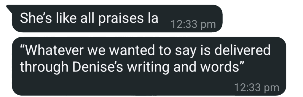 “Step aside DeepSeek, Canva, ChatGPT, or whatever fancy AI tool you’re using. You could feed DeniseGPT a half-baked broken prompt and somehow, she’d still turn it into gold. Psst, premium users get 24K gold. The rest of you? Solid 18K sparkle, minimum.”